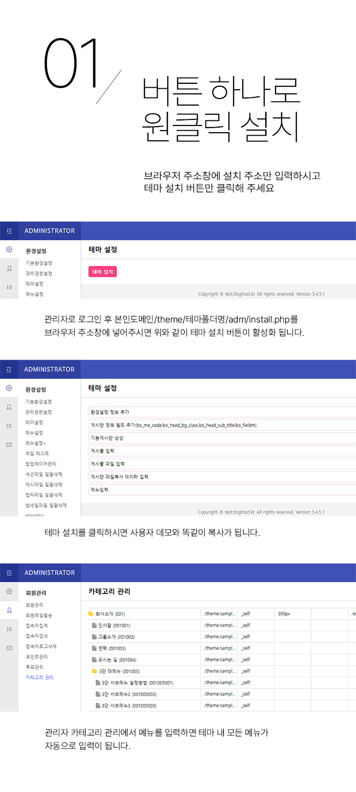 ※ 기본5.5 정식버전을 기반으로 작업된 테마입니다. 기존 5.4버전을 쓰시는 분들도 문제없이 호환이 가능합니다