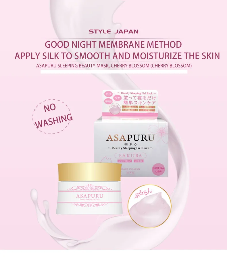 Asapuru Moisturizing Sleep Mask는 일본 최고의 체리 품종인 "Yae Sakura"와 "Yoshino Cherry Tree"의 추출물로 만들어졌습니다. 이 성분들이 함께 작용하여 피부 턴오버를 개선하고 건강한 미백 효과를 촉진합니다.