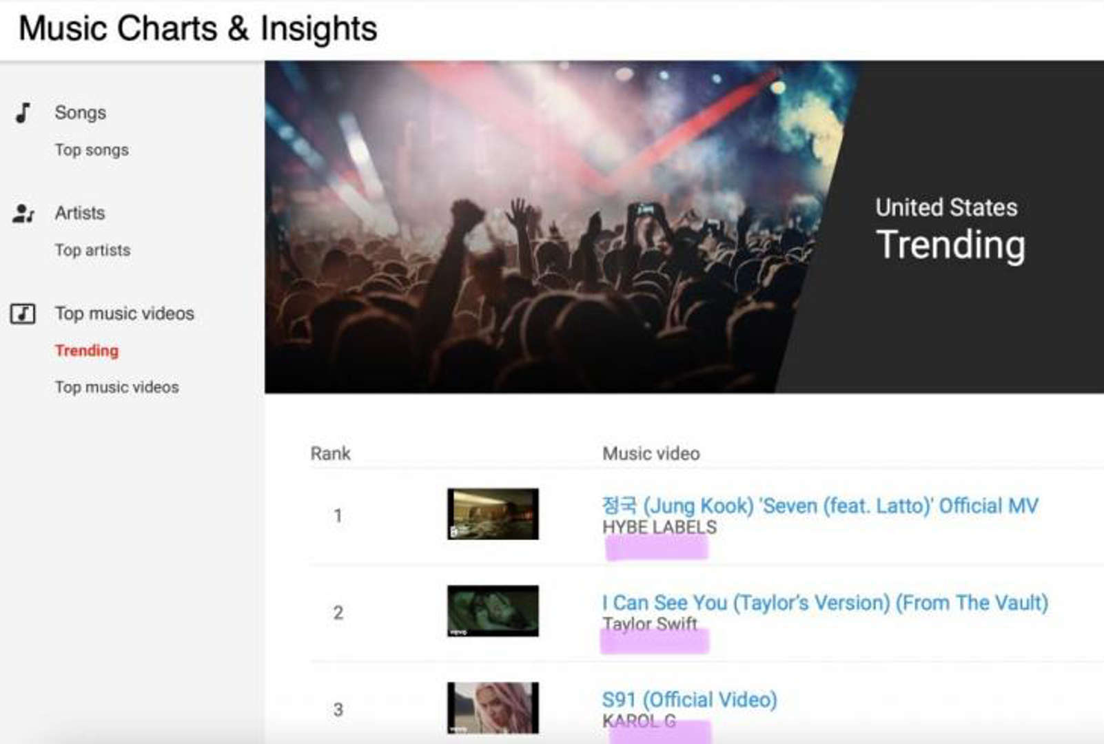 . 팬들은 동일 소속 가수들은 정상적으로 표기되어 있음에도 불구하고, 5천만 조회수를 넘는 정국의 아티스트 표기 오류로 인해 조회수가 정확히 반영되지 않을 수 있다는 점에서 수정을 요청하고 있습니다.