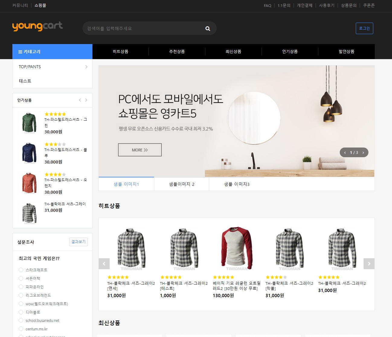 기본 제공되는 템플릿 및 디자인 옵션이 카페24에 비해 제한적이다.