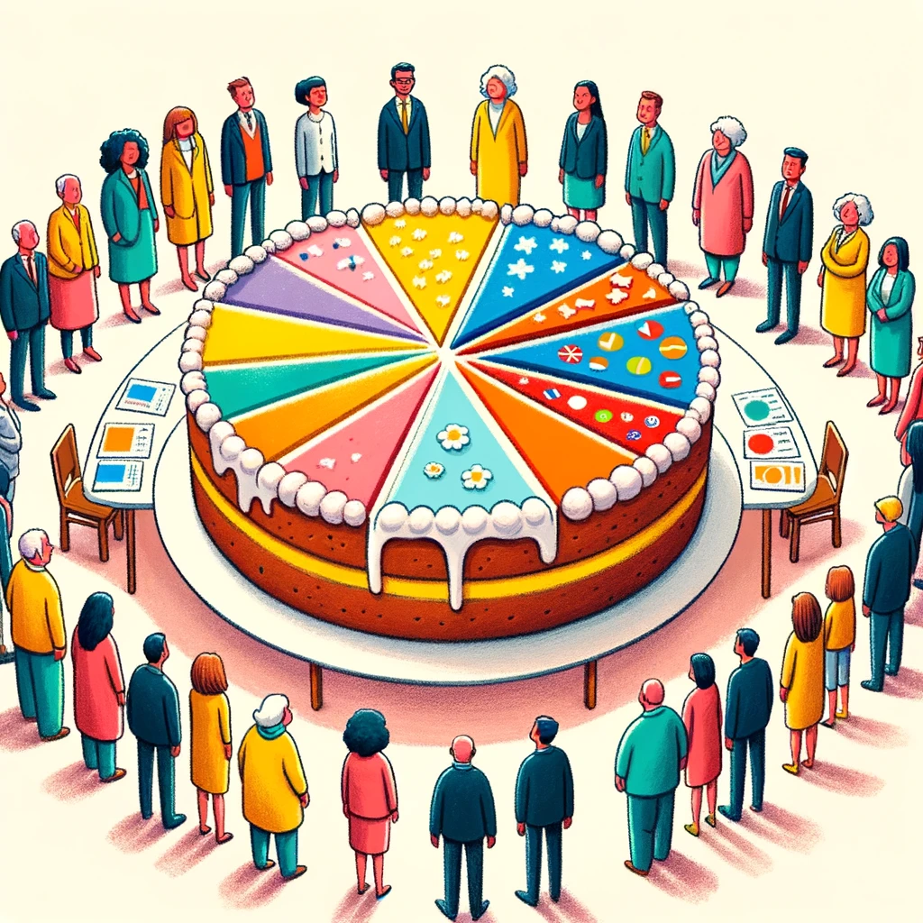 비례대표를 쉽게 이해하기 위해 케이크 나누기에 비유해 볼게요.
