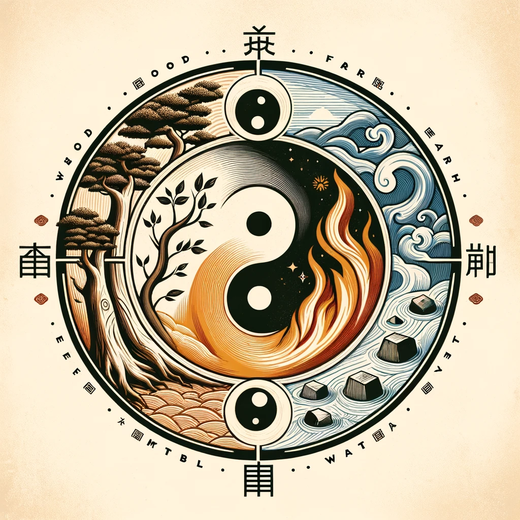 오행은 목, 화, 토, 금, 수로 구성되며, 각 요소는 특정한 성질과 상호 작용을 가지고 있습니다. 이 다섯 가지 요소는 자연과 인간 생활의 모든 현상을 이해하는 데 사용됩니다.